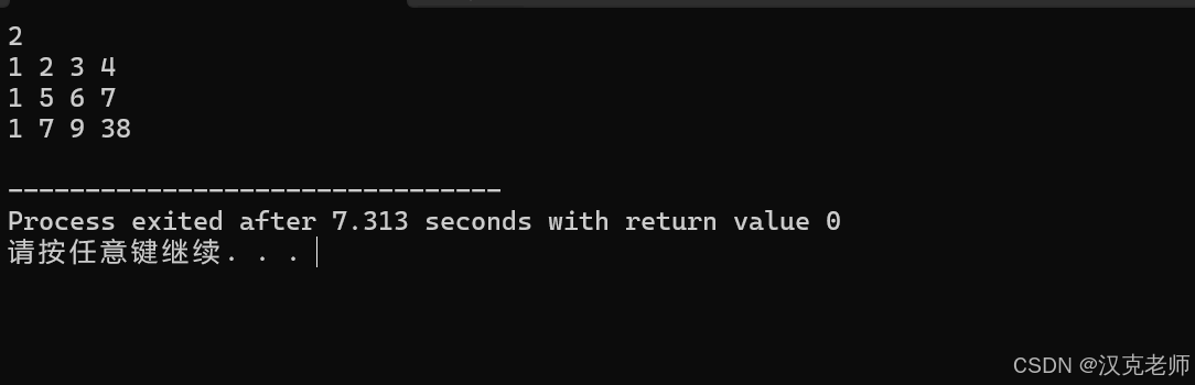 运行时可以输入 n=3 和 f = 1 2 3 4 5 6 7 8 来验证表格与我们之前的示例一致。