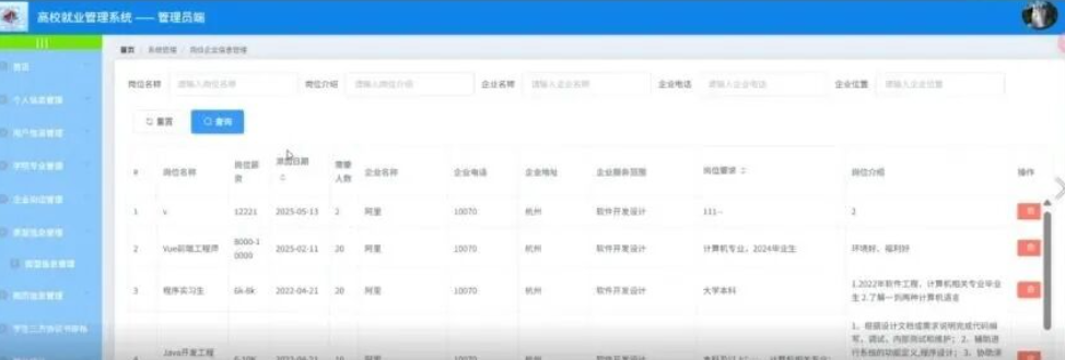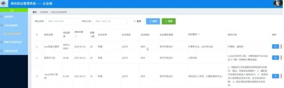 3.企业岗位信息功能
