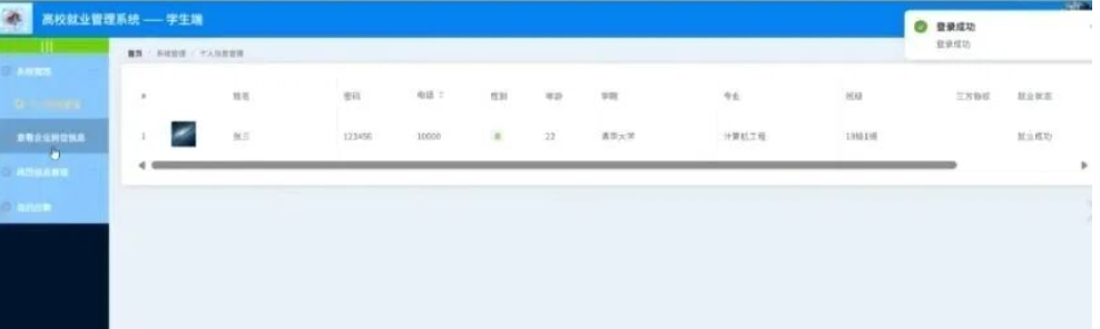 学生点击系统管理;在个人信息管理页面对姓名、密码、电话、性别、年龄、学院、专业、班级、三方协议、就业状态等信息进行查看或修改;