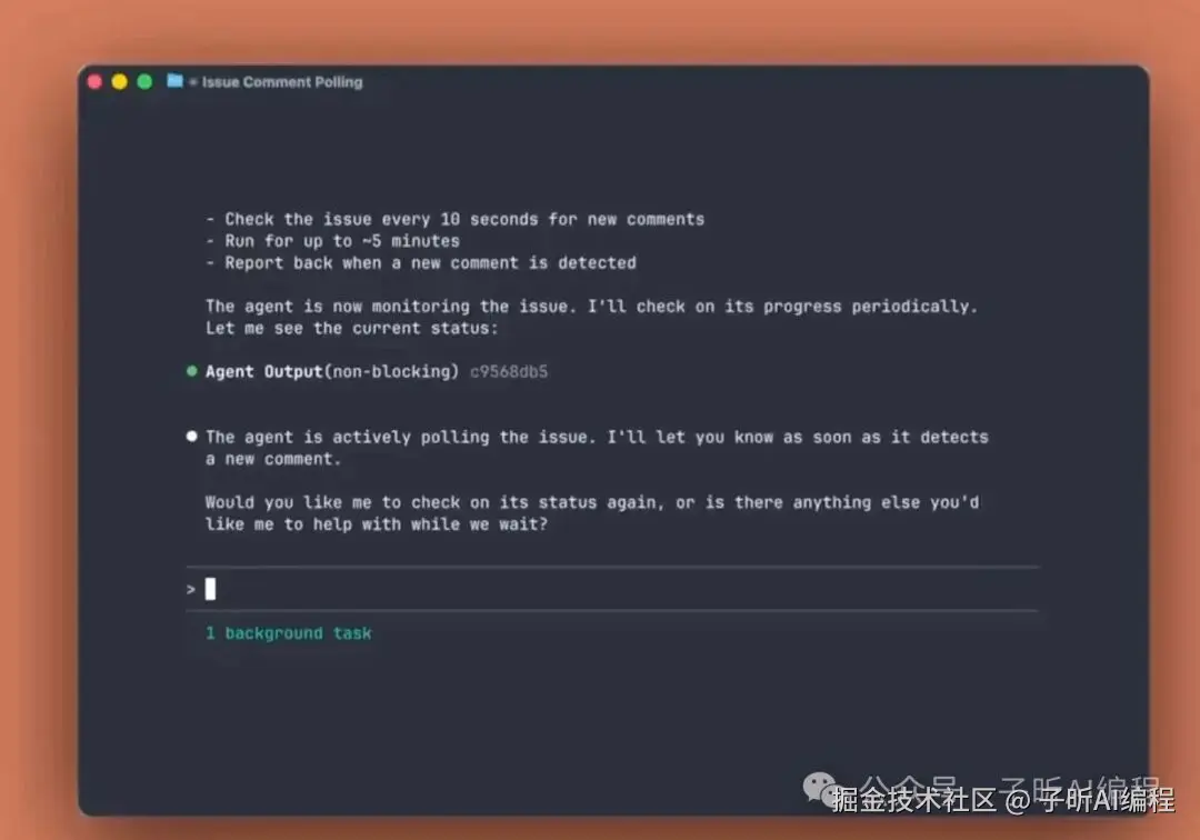 怎么用:在提示词里明确告诉Claude使用后台agent。比如官方示例:"Using a background agent can you poll this issue for comments every 10 seconds",agent就会在后台每10秒检查一次。
