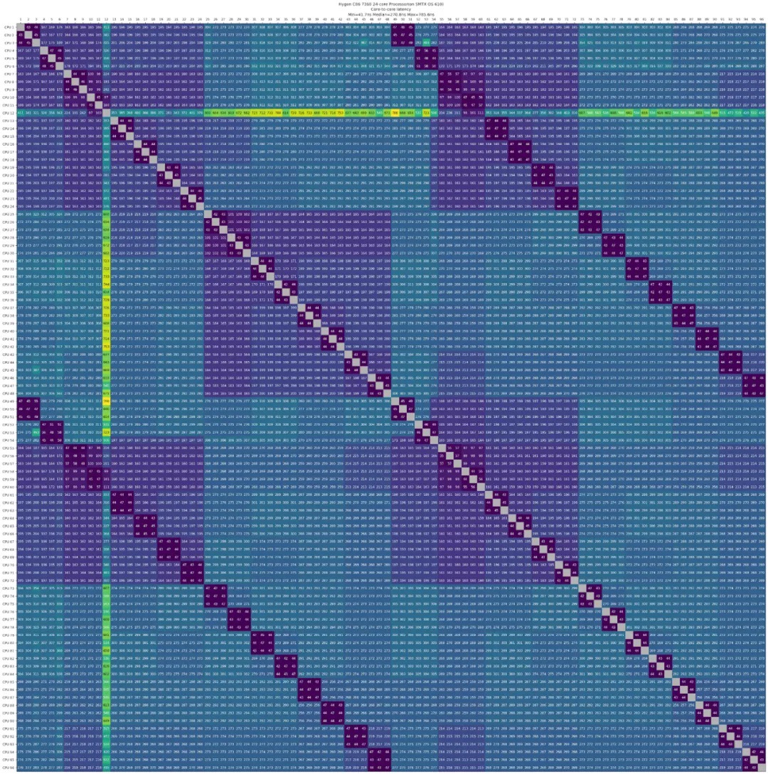 海光 C86 7360 24 核 CPU 各核心访问延迟测试结果(自行测试)