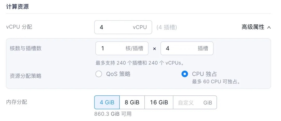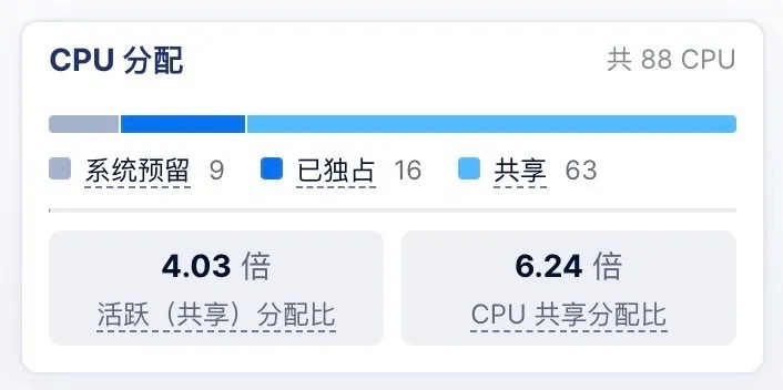 - **系统预留:**为系统预留 8 vCPU,保障系统服务运行。
