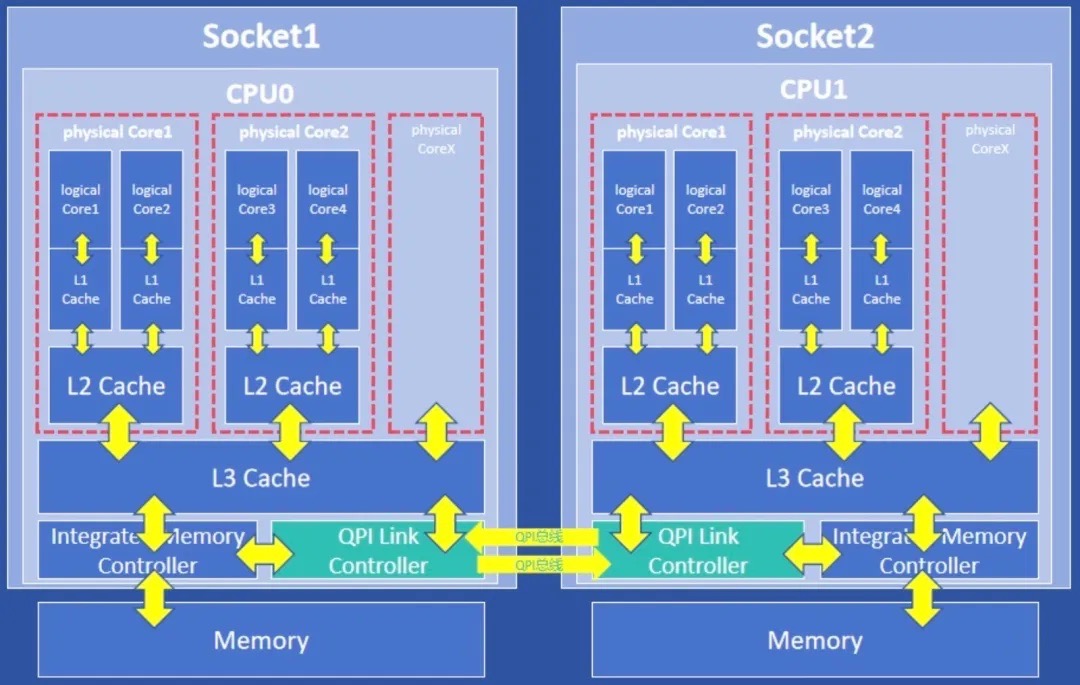 在 NUMA 架构下,不同的内存器件和 CPU 核心从属不同的 NUMA Node,CPU 访问内存的时间取决于 CPU 与内存的相对位置,通过优先访问相对位置较近的内存可缩短延迟。