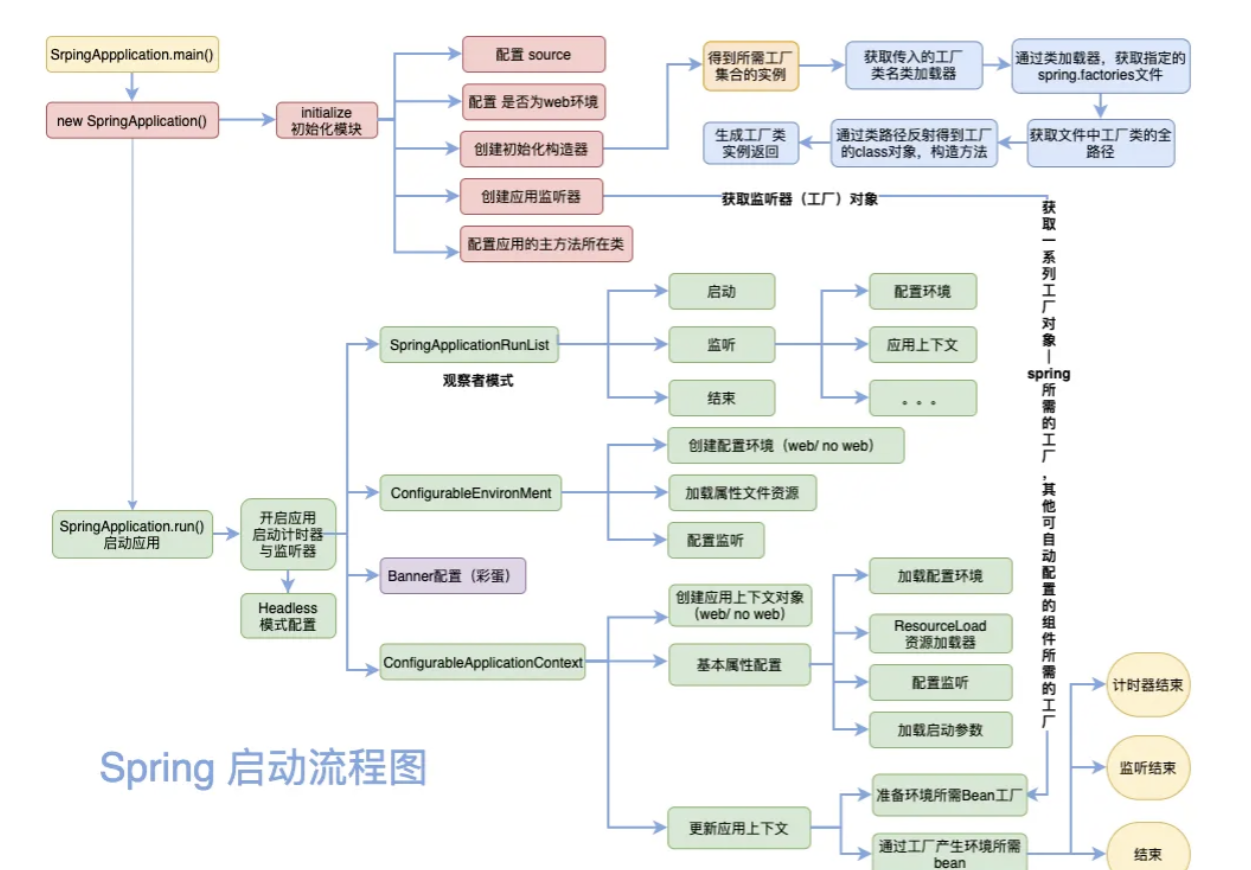 由上图可以见到spring boot的整个启动流程和各个组件间的互相调用关系: