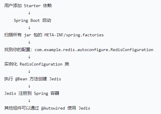 RedisAutoConfiguration 依赖 RedisProperties 来获取配置信息,然后创建 Jedis Bean 供其他组件使用。