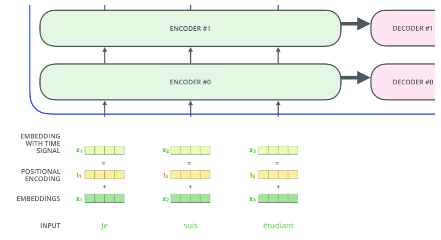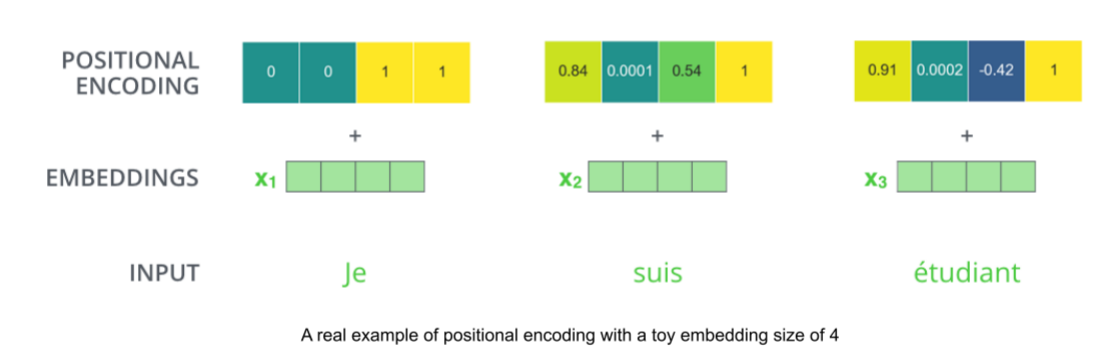 为了解决这个问题,转换器向每个输入嵌入添加一个向量。这些向量遵循模型学习的特定模式,这有助于它确定每个单词的位置,或序列中不同单词之间的距离。