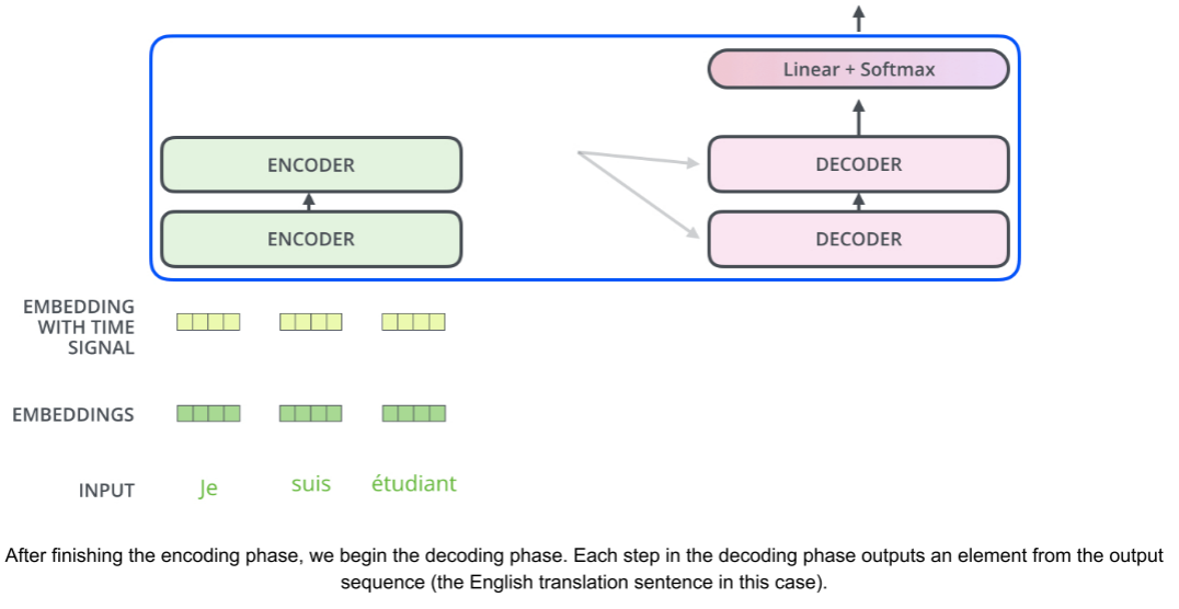 The following steps repeat the process until a special symbol is reached indicating the transformer decoder has completed its output.