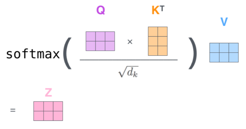 因为我们处理的是矩阵,所以我们可以将第二步到第六步浓缩到一个公式中,以计算自我关注层的输出。