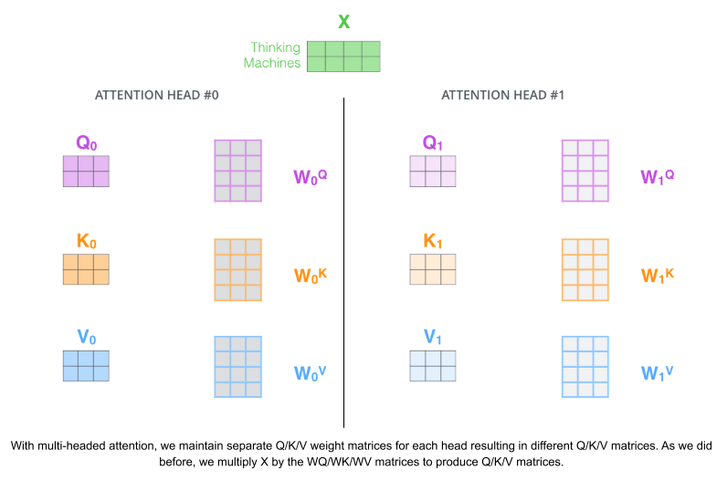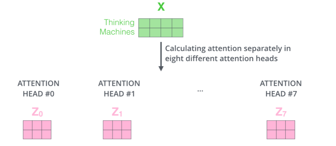 (2)It gives the attention layer multiple "representation subspaces ".它为关注层提供了多个"表征子空间"。不同的注意力会产生不同的QKV,也会产生不同的Z