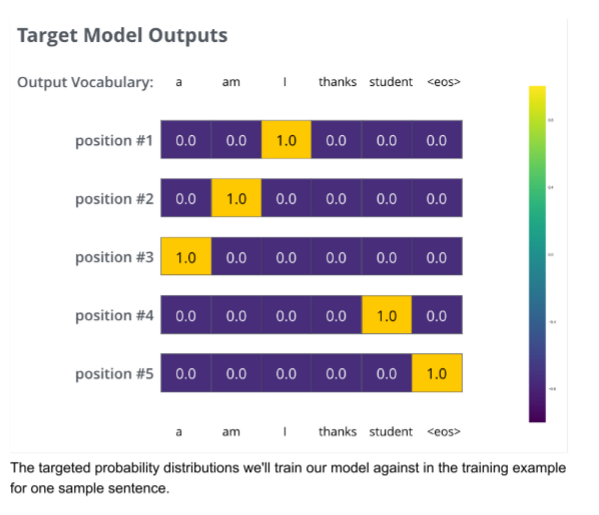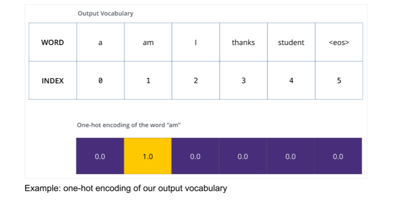 Once we define our output vocabulary, we can use a vector of the same width to indicate each word.This is also known as one-hot encoding.