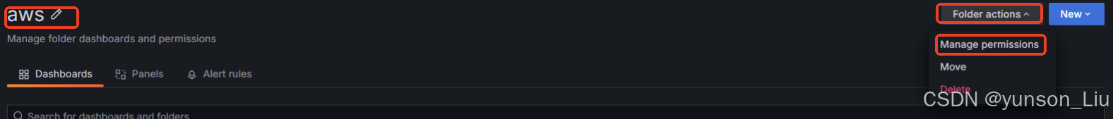 我们需要将直接放在dashboard下的资源放到新的folder,然后再给folder permissions处理