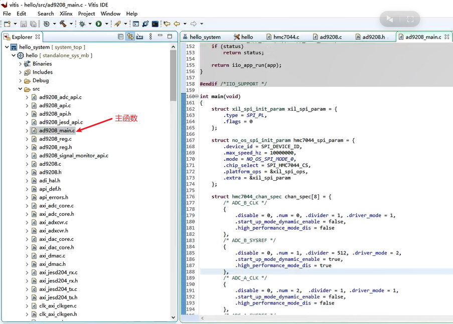初始化的特殊操作:代码中调用ad9208_initialize()后立即调用ad9208_remove(),这通常是为了执行一次软复位或确保芯片从特定状态唤醒,是此类高速ADC常见的启动序列。