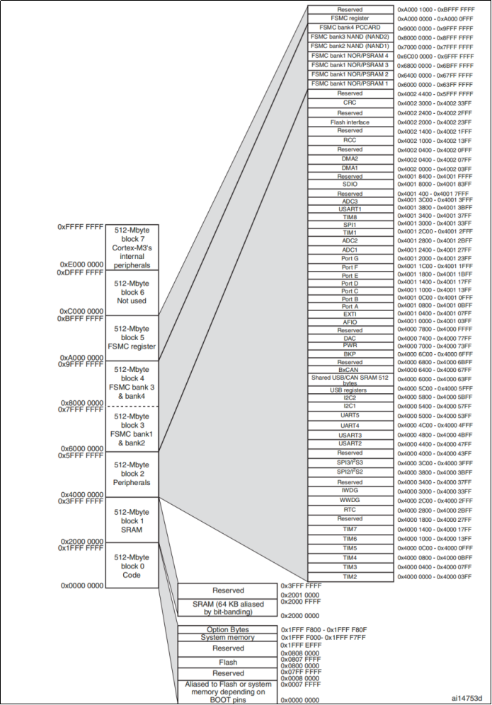 1.4STM32具体存储器映射图