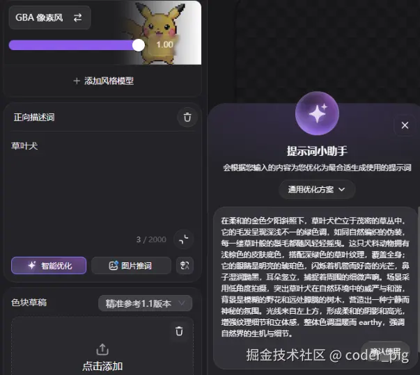 不过这种批量生成 Prompt 的一般都比较 "简陋 ",可以用 Holopix AI 提供的 "智能优化" 进行润色: