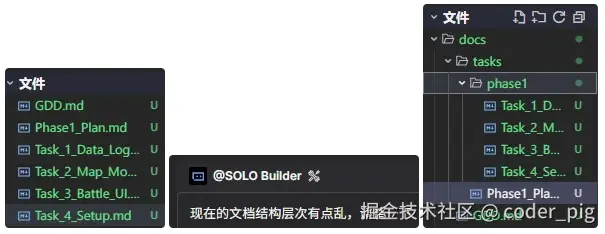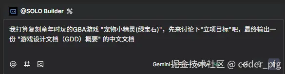 SOLO Builder 模式没有 Plan 开关,需要在 Prompt 中写明生成 GDD 文档,不然它有时会直接开始 "堆代码":