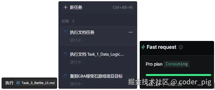 接着就是点击左上角的 " + 新任务 ",然后在每个 Agent 里写不同的 Prompt:"执行xxx.md":