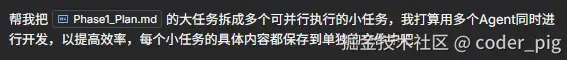 😏 不够,我还要玩更 "骚" 的 "多Agent并行 ",把 Trae 的效率拉爆,写 Prompt 把 大任务 拆成多个 "可并行执行的小任务 ",然后还是得生成 "文档":