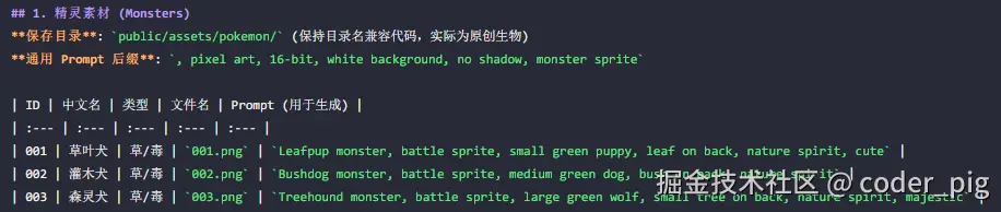 😆 接着用我们上面训练的模型来生成 "宝可梦 " 和 "道具 ",生图 Prompt 可以让 Trae 生成一个素材清单: