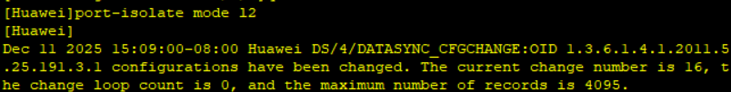 port-isolate mode l2 # 配置端口隔离的模式为l2模式,此外还有all模式。