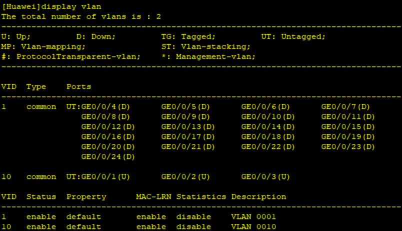 vlan batch 10 # 创建vlan10
