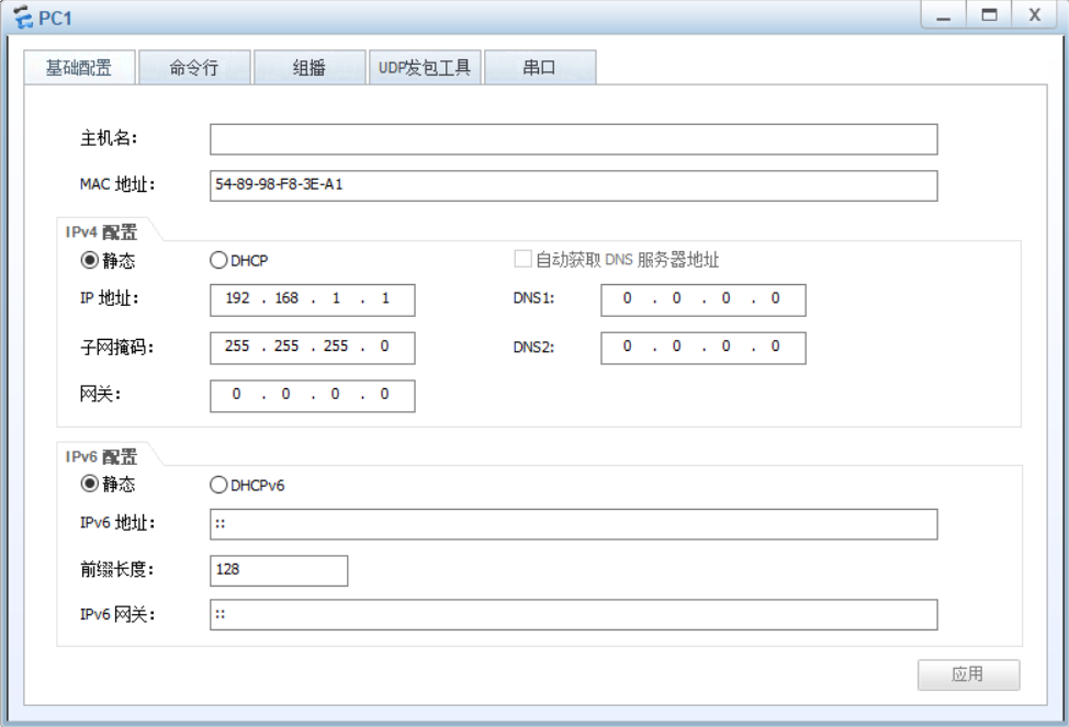 PC1: IP地址:192.168.1.1/24