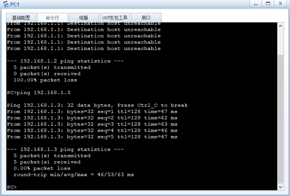 PC3: IP地址:192.168.1.3/24