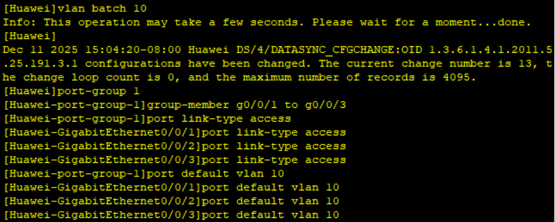 group-member g0/0/1 to g0/0/3 # 将g0/0/1到g0/0/3的接口加入接口组