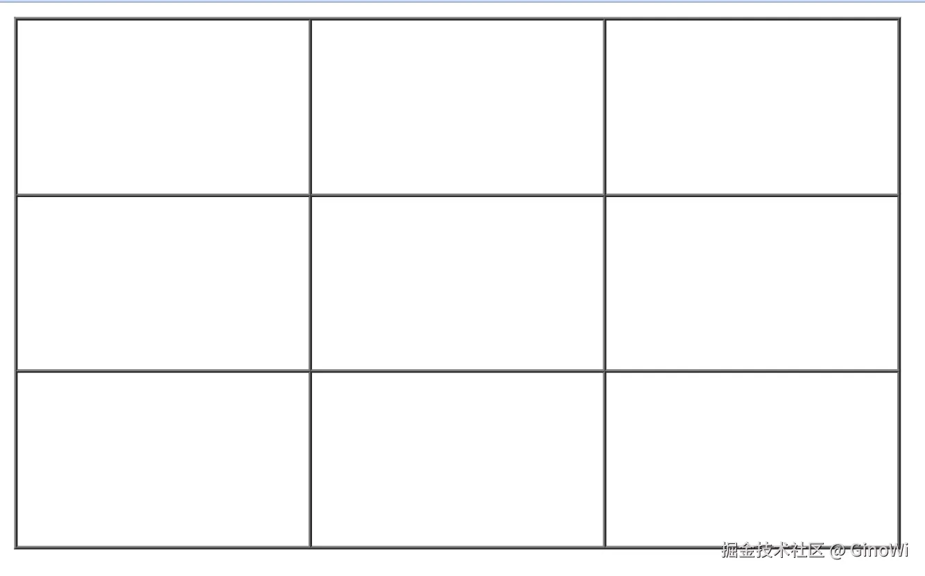 html<table bgcolor="black" cellspacing="1px" width="500px" height="300px"> <tr bgcolor="white"> <td></td> <td></td> <td></td> </tr> <tr bgcolor="white"> <td></td> <td></td> <td></td> </tr> <tr bgcolor="white"> <td></td> <td></td> <td></td> </tr> </table>-