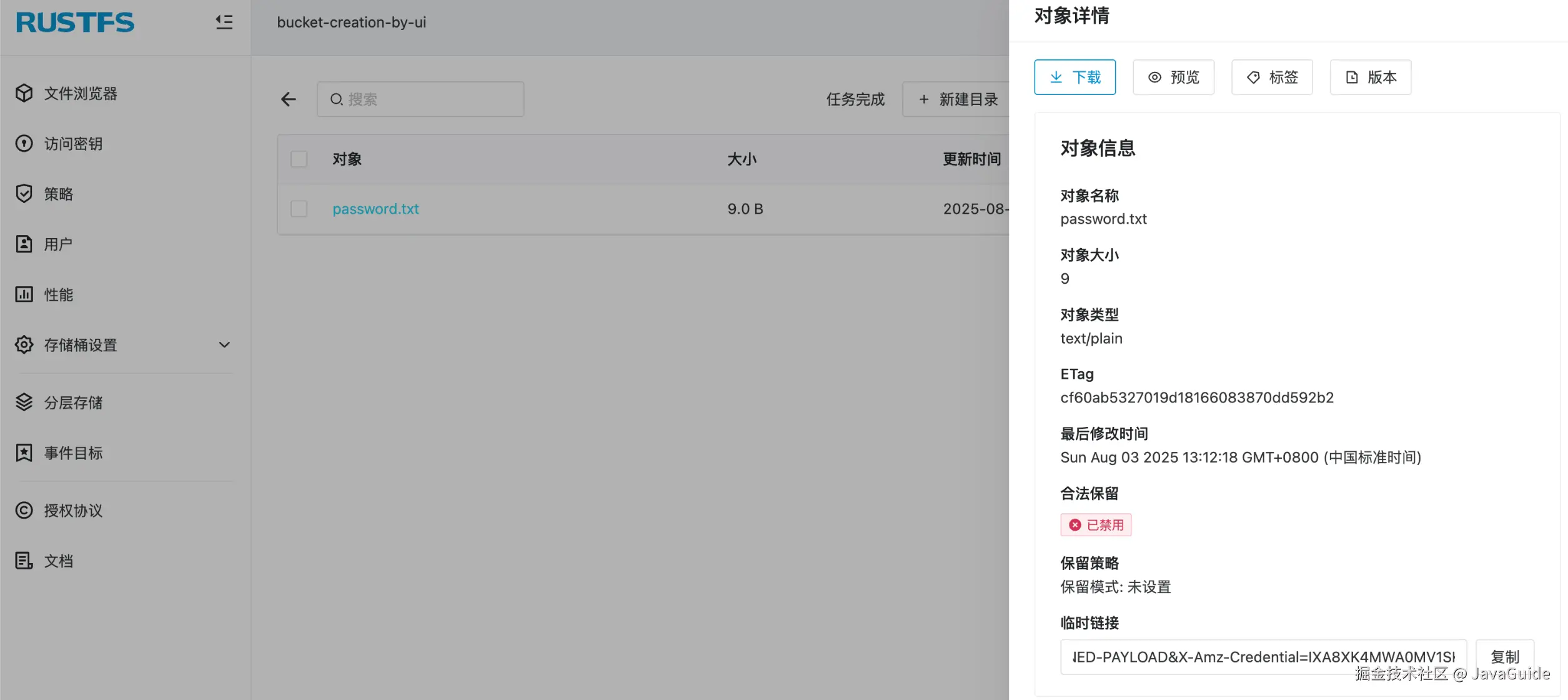 RustFS 是一个基于 Rust 语言开发的高性能分布式对象存储软件,定位与 MinIO 高度相似,功能基本对齐 MinIO 开源版(包括分片上传、桶策略、版本控制、事件通知、生命周期管理等),完全兼容 AWS S3 协议,部署简单(Docker 一键启动),并提供现代化的可视化管理控制台。