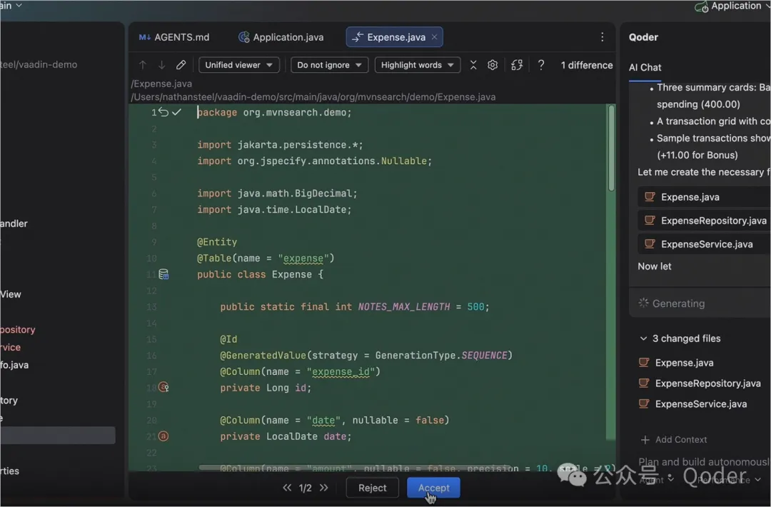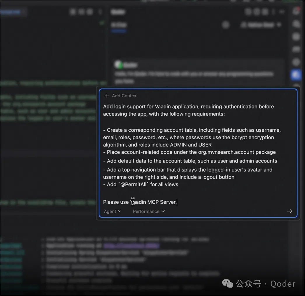 下面通过一个完整示例,演示如何用 Qoder 配合 Vaadin MCP,7 分钟内完成两个 Java 全栈功能。