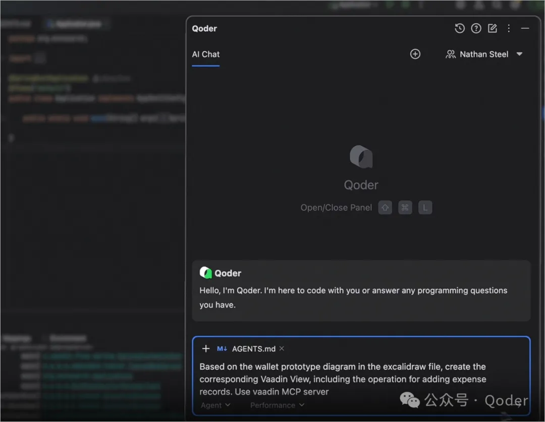 在 Qoder 的 AI Chat 对话框中输入下面这段文本: