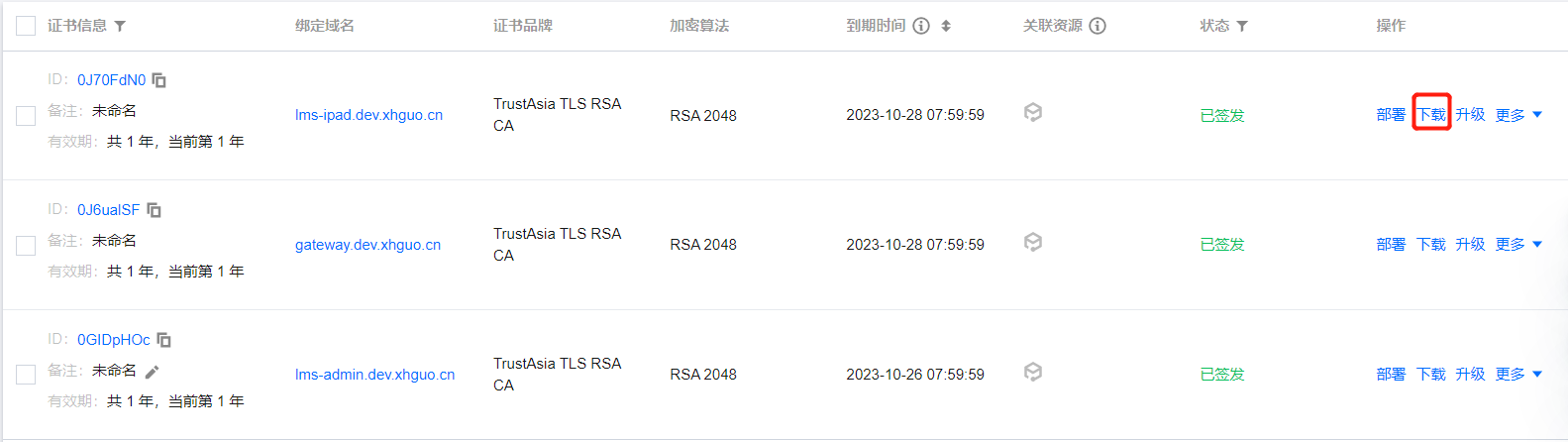 (2)申请完证书,等待签发完之后,选择对应的证书下载