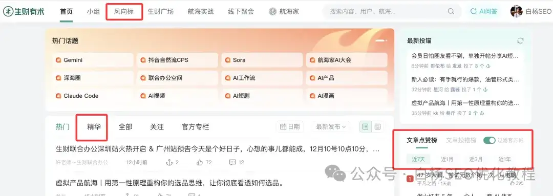 **白杨SEO补:**上面提到这个生财有术,目前是3365一年的付费圈子。如果你不在生财,可以加白杨SEO微拿3天免费体验,也可以自己进生财3天看看,不满意可以退出来。