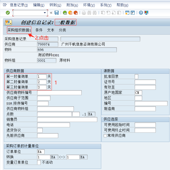 2.采购信息记录的数据分为客户端级别的常规数据和采购组织特定的数据