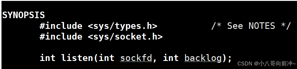 - listen()声明sockfd处于监听状态,并且最多允许有backlog个客⼾端处于连接等待状态,如果接收 到更多的连接请求就忽略,这⾥设置不会太⼤(⼀般是5)