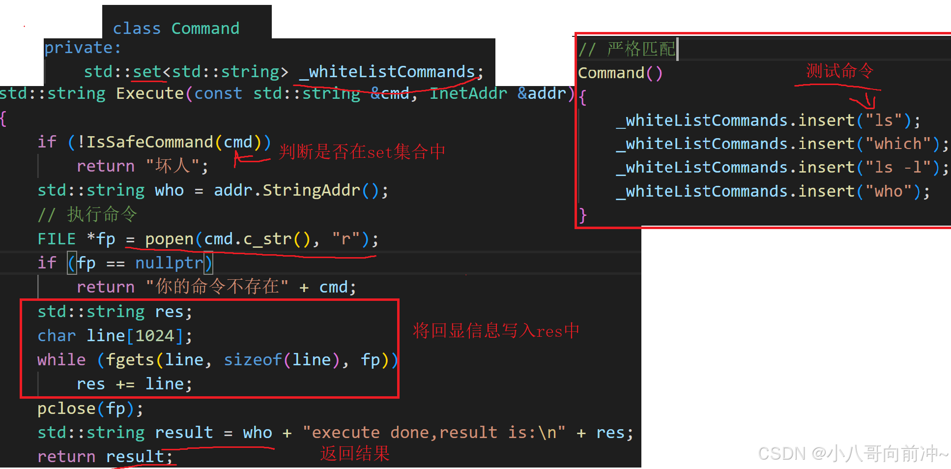 客户端向服务端发送指令,服务端执行指令,然后将指令执行完成后的信息回显给客户端。