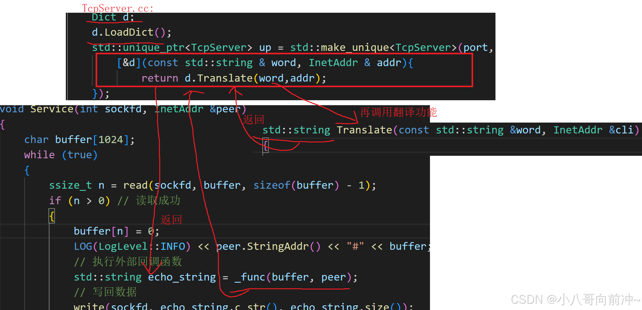 3.服务端回调函数,是可以灵活的实现各种服务,比如我们依然写之前的翻译系统服务。