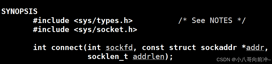 - connect和bind的参数形式⼀致,区别在于bind的参数是⾃⼰的地址,⽽connect的参数是对⽅的 地址;
