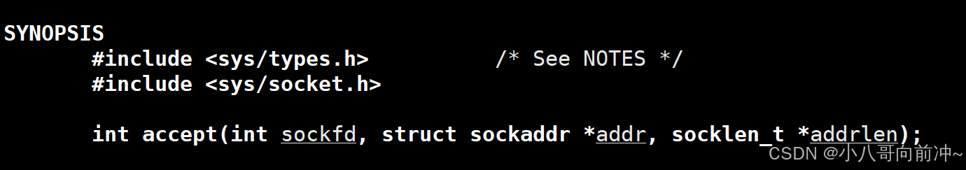 - addr是⼀个传出参数,accept()返回时传出客⼾端的地址和端⼝号