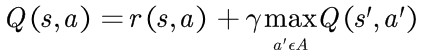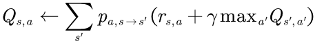 Q(s,a) = Σ_{s'} P(s'|s,a)[R(s,a,s') + γ * max_{a'} Q(s',a')]