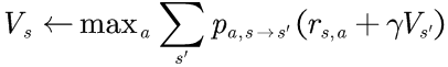 标准算法:V(s) = max_a Σ P(s'|s,a)[R(s,a,s') + γV(s')]