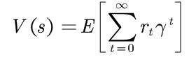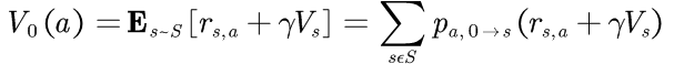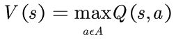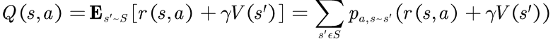 Q等于在状态s时采取动作a所预期获得的立即奖励和目标状态折扣长期奖励之和。可以通过Q(s,a)定义V(s):