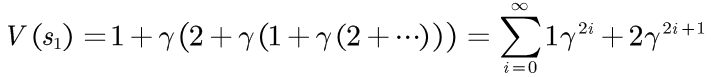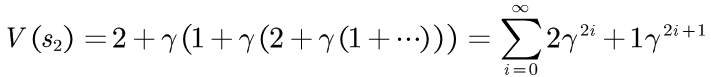 (3)智能体以0.5概况向右,以0.5概率向下,状态1的价值为=0.5*1.0+0.5*2.0=1.5;