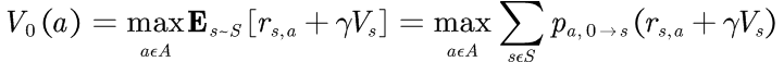 状态的最优价值,等于状态下动作的总奖励的最大值