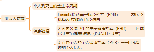 健康数据 包括三个部分:1**.面向医院**的电子医疗档案(EMR)------一家医疗机构内 存储的 诊疗信息