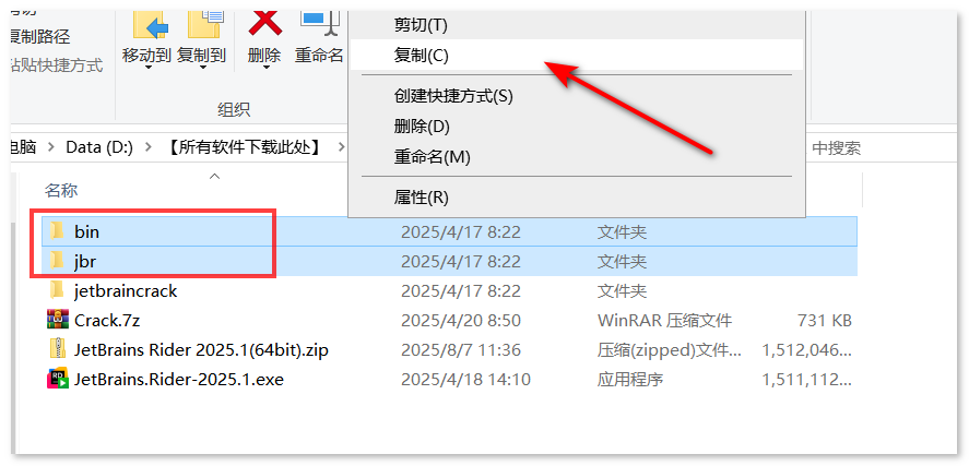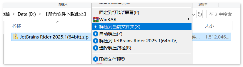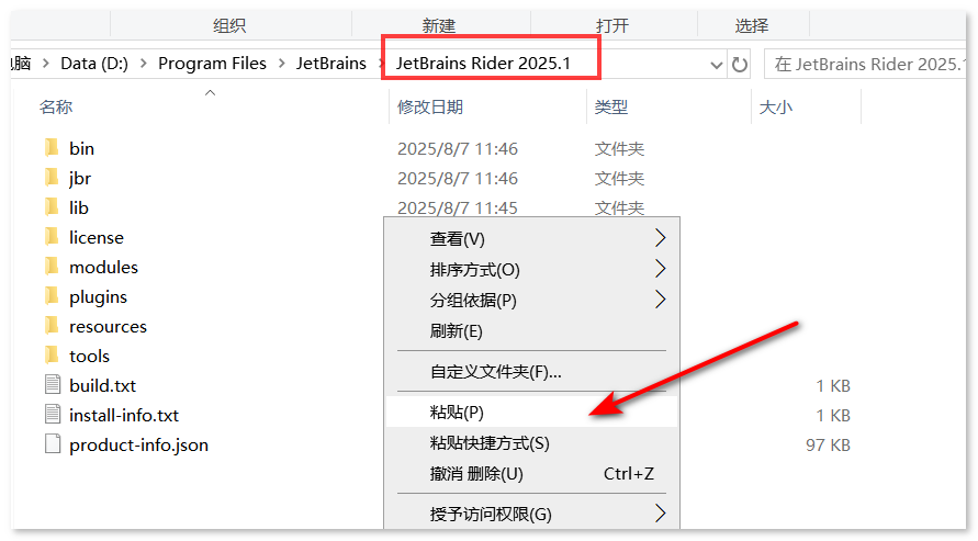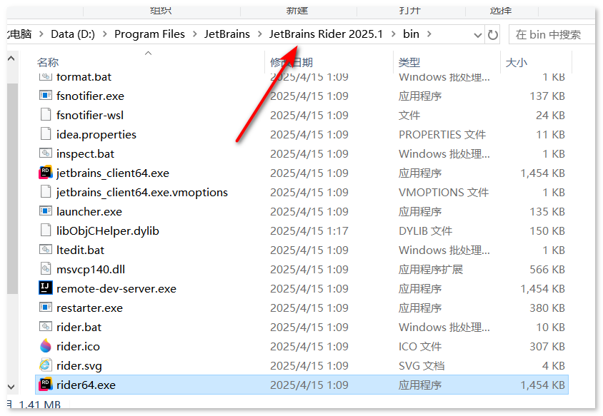 14点击路径地址栏中的【JetBrains Rider 2025.1】