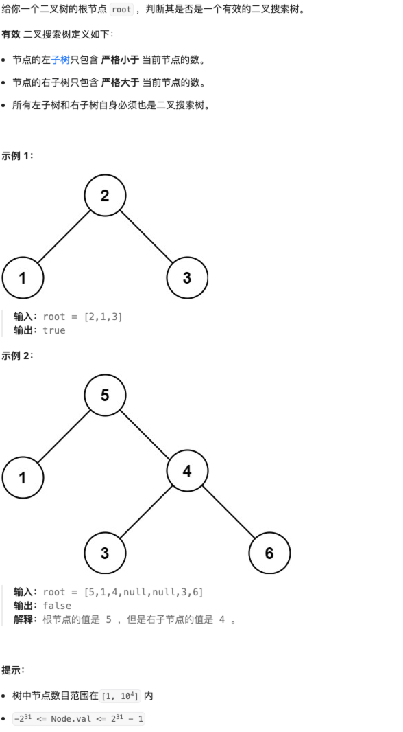 - 二叉搜索树(BST)要满足的是:**左子树所有节点 < 当前节点 < 右子树所有节点,**而非仅比较直接子节点