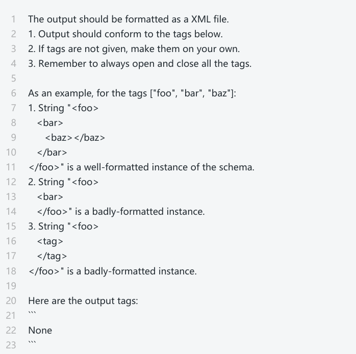 - 举例1:不使用XMLOutputParser,通过大模型的能力,返回xml格式数据