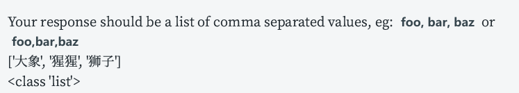 列表解析器:利用此解析器可以将模型的文本响应转换为一个用 逗号分隔的列表(List[str])