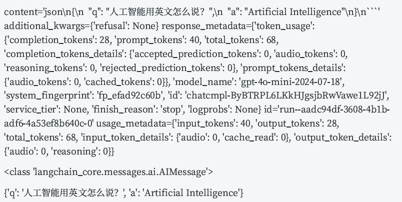 - [①字符串解析器 StrOutputParser](#①字符串解析器 StrOutputParser)